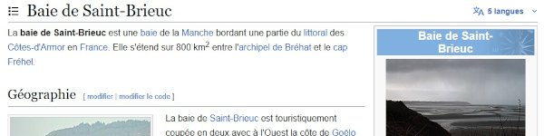Sur Wikipédia La baie de Saint-Brieuc est une baie de la Manche bordant une partie du littoral des Côtes-d’Armor en France. Elle s’étend sur 800 km2 entre l’archipel de Bréhat et le cap Fréhel. Elle est touristiquement coupée en deux avec à l’Ouest la côte de Goëlo et à l’Est la côte de Penthièvre. Occupant une surface d’environ 800 km2 jusqu’à l’isobathe 30 m, elle est délimitée par l’archipel de Bréhat et le cap Fréhel… ► Montauban-de-Bretagne 🛈