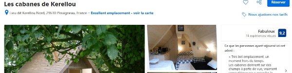 Sur booking.com L’établissement Les cabanes de Kerellou vous accueille à Plouigneau. Tous les hébergements disposent d’un coin salon, d’une télévision à écran plat avec les chaînes du câble ainsi que d’une salle de bains privative avec une douche et des articles de toilette gratuits. Vous bénéficierez d’une bouilloire. Certains hébergements possèdent également une kitchenette équipée d’une plaque de cuisson. Des serviettes et du linge de lit sont fournis… ► Baie de Saint-Brieuc 🛈